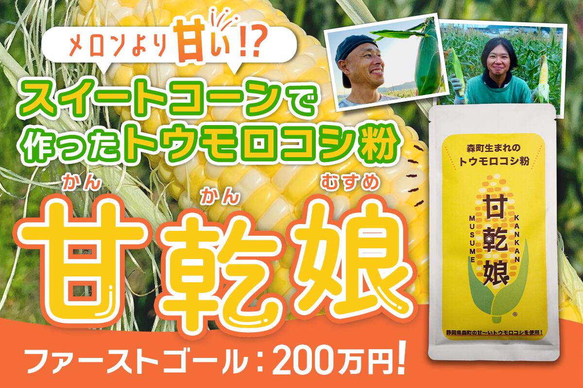 甘乾娘』は、100%地元森町で収穫したトウモロコシを乾燥させ粉末化した森町生まれの優れた品質のコーンパウダーです。手軽に使える粉末状であり、お料理やスイーツへの応用が効く、万能な調味料とも言えます。芳醇でしっかりと甘味があって、食感も滑らかでクリーミー、優しい味わいが魅力的です。 そんな『甘乾娘』は静岡県森町の肥沃な田畑でスイートコーンを育てています。土作りから種まき、収穫、そして製品づくりに至るまで、一切の手間と時間を惜しまず、愛情を込めて育てています。コーンパウダーの生産にあたっても、契約農家で育てたスイートコーンだけを使用し、品質にこだわっています。 『甘乾娘』の名前は、生産地の甘いコーンと乾燥処理を施していることから名づけました。 この『甘乾娘』の誕生は、創業者が乾燥させた粒状のトウモロコシを何か新しい商品に出来ないかと思案していた時に、知り合いのパン屋さんの方から「粉にしてトルティーヤを作ったら美味しそう!」との提案がキッカケで、早速、粉にして小麦粉と混ぜて焼いたところ、簡単ですごく美味く出来きました。 【甘乾娘】は、お菓子作りやドレッシングなど、幅広い料理に利用できるコーンパウダーです。使い方は、大さじ1~2杯をスムージーやパンケーキ生地、ドレッシングなどの食材に混ぜ込み、コーンの芳醇な香りと甘みが広がります。 『甘乾燥娘』を使えば、お料理がさらに美味しくなりますよ!みんなに自慢できるお料理を作ってみませんか? ※高温多湿を避け、直射日光の当たらない冷暗所で保存してください。開封後は早めに使い切るようにしてください。